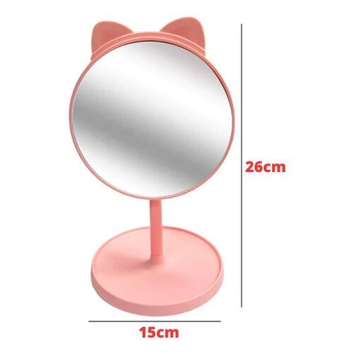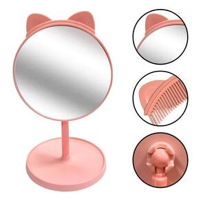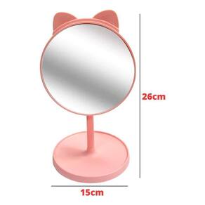Especificação: - Dimensões do produto unitário : 15x26cm - Itens Inclusos: Espelho de mesa com um pente embutido na orelha do gato. - Material: Plástico e vidro