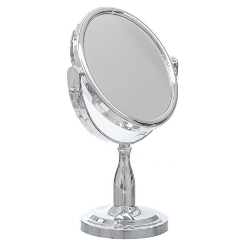 Um lindo espelho de mesa com aumento 3x, permitindo maior precisão na hora de barbear, fazer aquela maquiagem especial, limpeza de pele ou colocar lentes. Com espelho giratório em 360º e dupla face sendo uma parte refletindo o tamanho real e a outra a imagem refletida em três vezes, tornando o seu dia a dia mais prático.