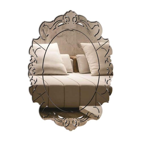 Material Espelho em Acrílico com 2mm de espessura, com reflexo idêntico ao espelho de vidro. Mas por ser flexível pode ocorrer pequenas distorções de imagem de acorda com a superfície de instalação. Portanto quanto mais lisa a superfície melhor a imagem da peça.