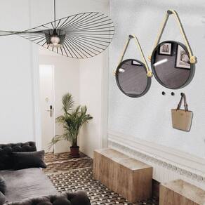 O espelho Adnet foi criado na década de 1950 pelo design Jacques Adnet, que decidiu unir diferentes materiais, como metais e couro, para criar o produto que hoje é uma das peças mais emblemáticas da decoração moderna e contemporânea. Moldura em Alumínio que proporciona leveza ao produto, e permite acabamento em pintura epóxi-pó (não enferruja). Altura: 60 Ambiente Principal: Sala de Estar Cor Predominante: Preto Espessura: 40 Formato: Redondo Garantia do Fornecedor: 06 meses Itens Inclusos: Parafuso Largura: 60 Origem do Produto: Nacional Peso: 1 Tipo de Espelho: De Parede Marca: In House Decor Ean: 7908068010531