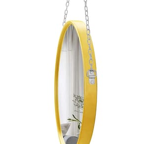 Espelho Decorativo Adnet Amarelo Alça Corrente Cromada 60cm Redondo - 60 cm