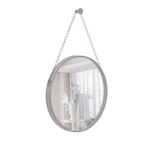Espelho Decorativo Adnet Cinza Alça Corrente Cromada 40cm Redondo - 40 cm