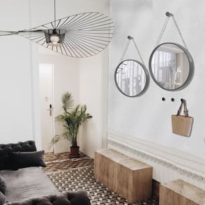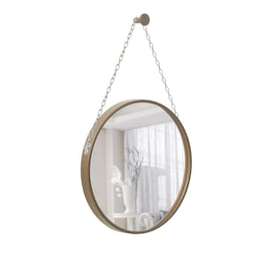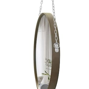 Espelho Decorativo Adnet Marrom Alça Corrente Cromada 50 cm Redondo Moldura em Alumínio que proporciona leveza ao produto, acabamento em pintura epóxi-pó não enferruja .