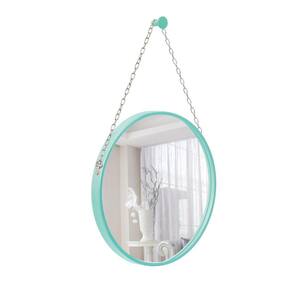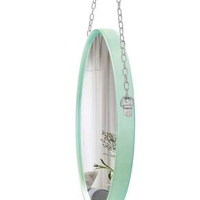 Espelho Decorativo Adnet Verde Alça Corrente Cromada 50cm Redondo - 50 cm
