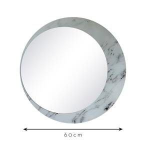Espelho Decorativo Luna Mármore Branco 60Cm Redondo Lateral - 60 cm