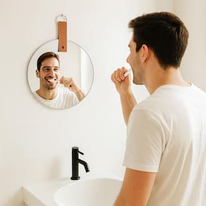 Benefícios Design minimalista com acabamento redondo limpo, que harmoniza com qualquer estilo de decoração Alça sintética elegante que proporciona charme e sofisticação ao ambiente Versátil e funcional, perfeito para lavabos, halls de entrada, escritórios, quartos e até como presente criativo Instalação prática, leve e fácil de pendurar sem necessidade de grandes ajustes