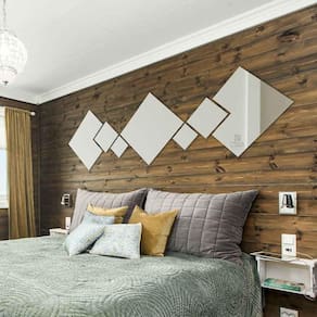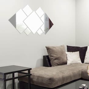 Espelho Decorativo Quadrados Grande Sala Cozinha Quarto 1,50x1,25cmO espelho em acrílico decorativo é uma excelente escolha para decoração, pode ser fixado em sua sala, quarto, área de convivência, onde desejar e de preferência que não seja exposto ao sol e chuva, a peça é fixada por meio de fita dupla face VHB 3M, super resistente e seguro, não cai da parede, a fixação deve ser feita em uma parede lisa e reta onde seja possível a aderência da fita, enviamos a peça com gabarito e película protetora que deve ser retirada pelo cliente.Produto- Espelho decorativo Grande em acrílico espelhado Fabricante:Visual Laser acrílicos Aplicação: Pode ser aplicado em qualquer superfície lisa onde a fita tenha aderência, Parede, papel de parede, gesso liso sem textura, azulejo, madeira ou em outros móveis Tamanho: São 7 peças para você fazer combinações diferentes 2 quadrados cortados de 45cm 1 quadrado de 45cm 2 quadrados menores de 15cm 2 quadrados médios de 22cmMontagem conforme preferir Proteção: Todas as peças são enviadas com película protetora que deve ser retirada pelo cliente, Para removê-la, force com a unha na ponta até que suba um plástico e a remova com cuidado.Garantia: Garantimos que todas as peças chegarão intactas e sem arranhados, caso contrario enviamos novamente a peça danificada mediante comprovação. Limpeza:Para limpeza é indicado apenas um pano úmido, sem qualquer outro tipo de produto podendo danificar a peça.