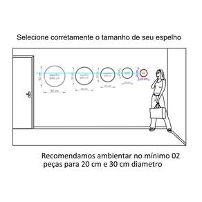 Moldura em alumínio que proporciona leveza ao produto e permite acabamento em pintura epóxi-pó (não enferruja).Espelhos que não distorcem a imagem, fabricados através do processo cooper free, livres de metais pesados, que não causa prejuízos a saúde e ao meio ambiente.Acabamento em revestimento de TNT para assegurar a conservação do produto.Acompanha pendurador, parafuso e bucha para instalação.Embalagem desenvolvida especialmente para envio de e-commerce* ESTE ESPELHO É PEQUENO TEM 20CM, SUGERIMOS MEDIR O LOCAL ONDE SERÁ INSTALADO, NÃO EFETUAMOS TROCA DEVIDO AO TAMANHO.
