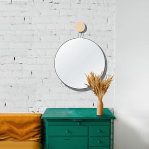 Espelho Decorativo Twiza Preto 50 cm Redondo O espelho decorativo Twiza possui um emoldurado de aço aramado, que com sua pintura preta, inspira um estilo de design industrial, mas a delicadeza do aramado lhe tira o ar rústico e pesado. É um espelho que traz leveza de uma forma marcante à decoração.