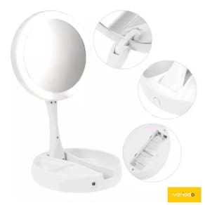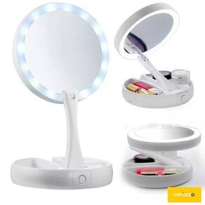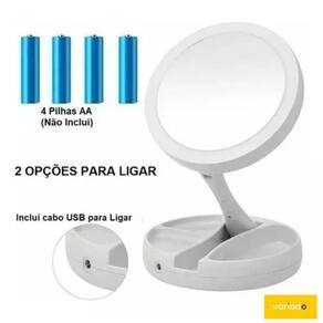 Espelho dobrável maquiagem luz led zoom 10x duas faces Variado Há mais de 10 anos no mercado, a variado tem o compromisso de atender com produtos de qualidade e com a agilidade que os tempos atuais exigem na relação com o cliente. Atendemos todo o brasil através dos principais marketplaces e buscamos incansavelmente a satisfação do nosso cliente, fornecendo produtos de qualidade e atendimento ágil e preciso. Ainda, contamos com uma equipe de profissionais altamente treinada e preparada para atendê-los. O nome da nossa loja, corresponde perfeitamente a nossa variação de produtos. Aqui você vai encontrar tudo aquilo que deseja e precisa. Compre na variado Sobre o produto Esse espelho, de excelente qualidade, é uma ferramenta indispensável no dia a dia, faça sua própria maquiagem e sobrancelhas mais facilmente. Serve também para eles fazerem a barba com maior segurança. Possui organizador de acessórios. Além disso, é uma peça decorativa, pode ser colocada sobre a mesa, bancada, penteadeira entre outros. Descrição do produto: - possui luz de led ao redor, para maior visibilidade. - utiliza 4 pilhas aa, não inclusas. - dupla face giratória: contém um espelho de aumento e outro normal. - tamanho: - altura: 29 cm, - diâmetro do espelho: 16 cm - cor: branco. - marca: hoyle cabo de energia - possui organizador de acessórios - corpo articulado e dobrável Aplicações: Uso doméstico, salões, portátil, entre outros. Perguntas e respostas frequentes: P: boa tarde qual o tipo de pilha que pode ser usadoR: boa tarde, para utilizar o espelho retrátil você pode contar com duas opções: 4 pilhas palito aa ou via cabo usb conectado à qualquer dispositivo. P: qual seria o diametro do espelhoR: o espelho em led possui 13cm de diâmetro. P: qual é a altura do espelhoR: boa tarde, o produto contém 29cm de altura na vertical. Estamos aguardando vocês no canal de perguntas com qualquer dúvida para ajudá-los. Marca: Led Mirror
