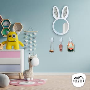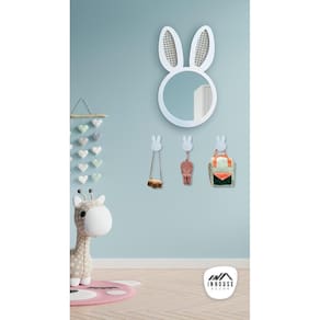 Com dimensões de 43X44cm, esse espelho é compacto e leve, facilitando o seu transporte e instalação. Ele pode ser fixado na parede com facilidade, trazendo praticidade e segurança para o uso infantil. Seu formato em lebre traz um toque divertido e lúdico ao ambiente, estimulando a imaginação e a criatividade das crianças.