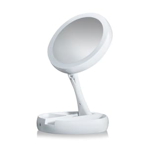 Com um visual super elegante, esse espelho de maquiagem possui dupla face e é iluminado com leds, tornando-o extremamente prático. Basta pressionar um botão na parte inferior do suporte para ligar as luzes LED, que são super brilhantes em ambos os lados, garantindo uma iluminação perfeita da imagem. Além disso, ele gira e se transforma em um poderoso espelho de ampliação, aumentando em 10x a imagem.