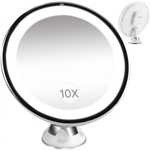 Espelho Cosmético com Ampliação 10X e Iluminação LEDRealce sua Beleza com PrecisãoNosso espelho cosmético possui uma tela de vidro ultra claro de 8” e ampliação de 10X, permitindo visualizar até os mínimos detalhes do rosto. Ideal para maquiagem, como aplicação de delineador, rímel e sobrancelhas, além de ser perfeito para a remoção de pelos indesejáveis.Iluminação LED NaturalLEDs de luz do dia, proporcionando iluminação clara e uniforme.30% mais brilho e 60% mais eficiência energética comparado às lâmpadas incandescentes.Requer 3 pilhas AA (não incluídas).Fixação Segura e AjustávelMecanismo de sucção Easy-Lock, permitindo fixação firme em superfícies lisas como cerâmica, mármore, acrílico e espelhos.Rotação de 360°, ajustável para qualquer ângulo.Portátil e compacto, ideal para levar em viagens, ocupando pouco espaço na bagagem.Especificações:Dimensões: 22 x 20 x 1 cmAcabamento cromadoTela de vidro ultra claro de 8”Ampliação de 10XFixação em superfícies lisasImportante:A fixação requer uma superfície limpa, plana e lisa de pelo menos 3,5” x 3,5”.Não fixa em superfícies como drywall, papéis de parede, estuque ou paredes texturizadas.Vídeo meramente ilustrativo. Marca: FAÇA E RESOLVA