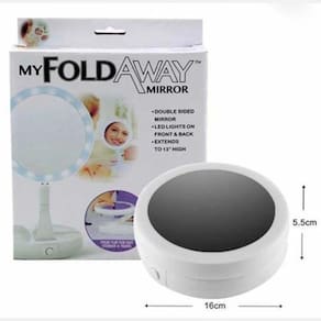 Este espelho, é feito para você mulher que mesmo na correria cotidiana, sempre arruma um tempinho para retocar a maquiagem ou arrumar o cabelo. Por ser dobrável e acompanhar em sua base um organizador de maquiagem, leve e compacto, ocupa pouco espaço, sendo ideal para guardar na bolsa, na mala de viagem e até mesmo em casa e estende-se para um máximo de 28.5cm de altura