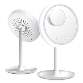 Espelho Maquiagem com Ventilador e Led + Espelho 5x Aumento Espelho Para Maquiagem Ventilador 3 Velocidades e Espelho que amplifica 5x Ideal para maquiagem, espelho amplo e um espelho menor com 5x aumento para você ver até os mínimos detalhes do seu rosto. Você conta ainda com Luz Led 2 opções de luz e Ventilador com 3 opções de velocidade. Você se maquiando enquanto seu espelho sopra uma brisa refrescante auxiliando a secagem da sua maquiagem. Você se maquiando mais rápido e sem suor. Características do Produto: - O ventilador embutido ajuda a secar a maquiagem e reduzir a transpiração - A luz de anel LED fornece iluminação suave com qualidade de estúdio 2 tonalidades de iluminação, mais forte ou mais fraca - Espelho de tamanho grande de 20 cm sem distorção - Espelho de 7.5cm com ventosas e ampliação de 5x - Base ampla da bandeja de exibição para armazenar objetos de valor - Toque nos botões do sensor para acender a luz do anel LED, ventilador de refrigeração ou ambos - O espelho funciona tanto no cabo USB quanto à pilhas AA; Especificações Técnicas:- Material: Polipropileno e Componentes Eletrônicos. - Alimentação: Liga por USB ou com 4 Pilhas AA 1.5v Não incluso . - Voltagem: 5v. - Quantidade de LED: 40 LED. - A Função Ventilador possui 3 Velocidades. - Possui 2 tipos de espelho, o maior que tem a visão normal e o menor que tem um aumento de 5x para te ajudar naquele detalhe. - Espelho com 40 Luzes de LED Frontal. - Espelho com Botão Touch Screen na parte frontal para Ligar e Desligar as funções. - Possui base removível - O espelho possui um espaço na base para você deixar os seus produtos de maquiagem acolhidos enquanto os usam. Dimensões: - Diâmetro do Espelho maior de 20 cm - Diâmetro do Espelho menor de 7,5 cm - Altura total de 34 cm - Largura da Base de 17 cm - Peso 690g Itens Inclusos: 1 Espelho Visão normal de 20cm 1 Mini Espelho Visão Aumentada 5x 1 Base1 Cabo USB somente o cabo Marca: Fan Mirror