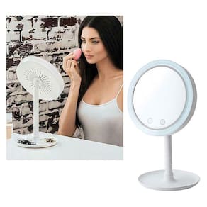 Novo espelho portátil que chegou para facilitar a sua vida na hora de fazer a sua maquiagem. Esse espelho possui 40 leds que ficam nas partes laterais da parte frontal do espelho e um ventilador pra te manter com um ar fresco durante o processo.