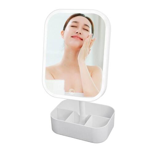 - Modelo: Espelho Maquiagem Retangular USB Portátil C/ 4 Compartimentos