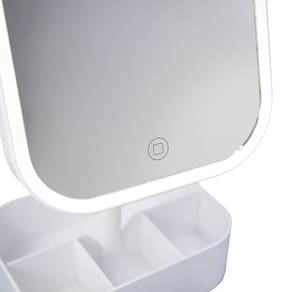 O Espelho LED é o acessório ideal na hora de se maquiar, arrumar o cabelo, se barbear, de forma prática no seu dia a dia. Possui iluminação LED brilhante com 3 níveis em torno de todo o espelho e conta 4 compartimentos para guardar seus acessórios de beleza. O espelho vira para os dois lados da base (frente e verso). É compacto e portátil, com sua bateria de carregamento via cabo USB, com uma luz vermelha indicando que esta carregando, e uma luz verde quando está completamente carregado. Para ligar, basta toca com o dedo em cima do touch no espelho, ajustando também o brilho desejado.