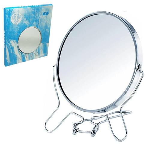 Espelho de mesa redondo dupla face 8'' 19,5cm de com pedestal e aumenta aramadoInformações adicionais:Ean: 7892014851784Validade: indeterminadaTamanho aproximado do espelho: 8'' 19,5cm de Tamanho aproximado da caixa: a:23,5xl:21xp:1,5cmPeso aproximado: 320gTipo de produto: espelho de mesa redondo dupla face com pedestal e aumentaCor: azul e prataComposição: aramado Marca: Saz Comércio