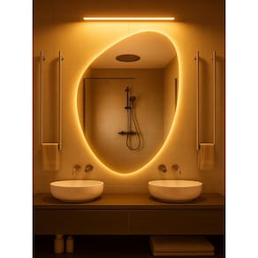 Informações Importantes: - A fonte é bivolt para maior facilidade - Cor do Led é 3000K Branco Quente - Borda do espelho é lapidada (Mais proteção, garantindo que o espelho não oxide com o tempo) - 100% Nítido e sem distorção - Suporte Nivelador (Para uma instalação simples e alinhamento perfeito)