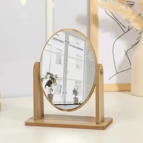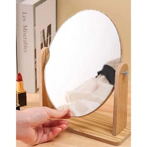 Caracteristicas: - Cor do suporte: Marrom - Material: Vidro e Mdf - Medidas total: 18cm (comprimento) 9cm (profundidade) x 20cm (altura) - Medidas do espelho: 17,5cm (altura) x 12cm (largura) - Ideal para Maquiagem - Contém uma unidade