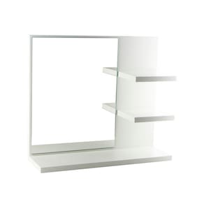 A espelheira Nice possui 3 prateleiras externas para guardar e organizar os itens de higiene pessoal e acessórios do seu banheiro, além de acompanhar um espelho amplo proporcionando um uso prático e agradável.