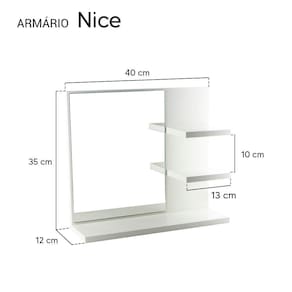 Espelho para Banheiro com Armário Branco Nice 40cm é a escolha perfeita para quem busca elegância, sofisticação e praticidade para seu banheiro.