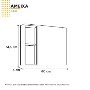 Espelheira em aço para banheiro Ameixa Dimensões: - Largura: 60 cm - Altura: 51,5 cm - Profundidade: 14 cm Características: - Produto: Espelheira - Modelo: Ameixa - Quantidade de porta(s): 1 - Quantidade de prateleira(s) interna: Sim - Quantidade de nicho(s) externo: 2 - Estrutura: Aço eletro galvanizado - Pintura: Pó eletrostática - Dobradiças: Sistema de amortecimento (slow) - Possui porta escovas: Não - Garantia: 5 anos Acabamento da Porta: Pintura Acabamento da Prateleira: Pintura Altura do Espelho: 41 Ambiente Principal: Banheiro Composição: Aço Eletrogalvanizado Cor: Preto Cor do Produto: Preto Escala de Brilho: Semi-Brilho Espessura do Espelho: 3 Formato do Espelho: Retangular Itens Inclusos: 1 Espelheira Largura do Espelho: 49 Linha ou Coleção: Ameixa Manual de Montagem e Instalação: https://product-hub-prd.madeiramadeira.com.br/862225/documents/3a55a4b6-a18a-4c22-a65d-4a874969e6631439414930espelheiraameixa.pdf Material da Porta: Aço Material da Prateleira: Aço Material Principal: Aço Necessita Montagem: Não Origem do Produto: Nacional Peso: 7 Peso Máximo por Prateleira: 2 Possui Espelho: 01 Possui iluminação: Não Possui Portas: 01 Possui Prateleiras: 01 Possui Toalheiro: Não Possui Tomadas: Não Recomendações de Uso, Manutenção e Limpeza: Pano umedecido. Tipo de Dobradiça/Corrediça da Porta: Metálica Tipo de Fixação do Espelho: Parafusos Tipo de Porta: Bater Tipo de Puxador da Porta: Não Possui