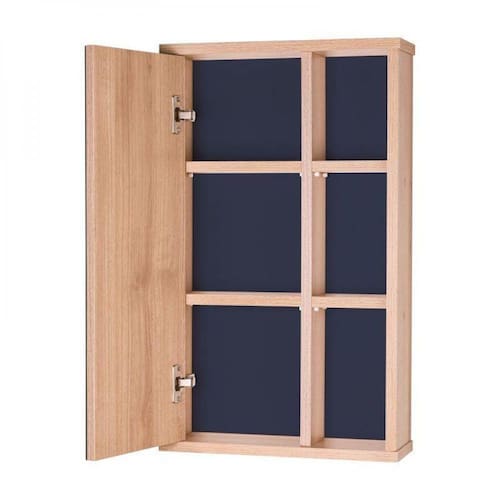 Medidas do Armário: Largura Total 42cm x Altura Total 70cm x Profundidade Total 13cm, nichos externos A 20cm x L 16cm x P 13cm, nichos internos A 20cm x L 26cm x P 13cm.