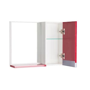 Armário para Banheiro com Espelho na cor Vermelho e Branco é ideal para organizar vários itens. Possui prateleira interna em vidro, armário com porta e amplo espelho. É a escolha perfeita para seu banheiro.