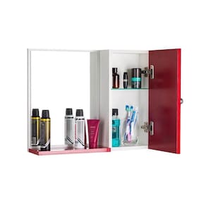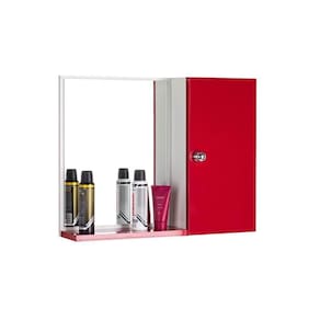 Espelho para Banheiro com Armário Vermelho. Já vem montado, pronto para colocar na parede. É só abrir a caixa e instalar em seu banheiro. Acompanha 2 parafusos com buchas para instalar na parede. Obs: a colocação dele na parede é por conta do cliente, mas é bem fácil de fazer, basta uma furadeira, régua e lápis para marcar o local de instalação. Basta colocar os dois parafusos na parede, depois encaixar o armário com espelho neles (tem 2 suportes metálicos atrás do armário, para encaixar nos parafusos). Armário para Banheiro com Espelho na cor Vermelho é ideal para organizar vários itens. Possui prateleira interna em vidro, armário com porta e amplo espelho. É a escolha perfeita para seu banheiro. Material: MDP 15mm Cor: Vermelho e Branco Altura total: 46cm Largura total: 58cm Profundidade total: 12,5cm Medidas do Espelho: 33cm x 42,5cm Instalação: a montagem e instalação do produto na parede são por conta do cliente Limpeza e conservação: recomenda-se a limpeza com pano úmido, não utilizar produtos abrasivos ou químicos Obs: Este anuncio inclui somente o armário com espelho, todos os itens de decoração das fotos não estão inclusos.