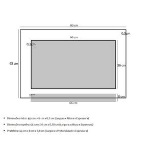 Espelho para banheiro com prateleira 80cm champanhe Os nossos espelhos são ideais para banheiros e lavabos trazendo um toque especial no projeto de decoração e proporcionando um design moderno e arrojado no ambiente. Além da elegância, sofisticação e praticidade tem a qualidade e a durabilidade indiscutível, pois todos os itens podem molhar que não irá danificar, os vidros são pintados com tinta de alta performance, o que lhe garante a permanência da cor . Os suportes da prateleira e as tampas dos parafusos são de inox, mais uma de excelência da qualidade desse produto. Itens inclusos: - vidro temperado colorido: 80 cm x 45 cm largura x altura - espelho: 66 cm x 36 cm x largura x altura - prateleira: 66 cm x 8 cm largura x profundidade - kit parafusos completo para instalação Espessuras: - vidro temperado: 5 mm - espelho: 3 mm - prateleira: 8 mm Montagem: montagem e instalação não inclusa na venda ou preço do produto, elas são de inteira responsabilidade do cliente. Atenção: o espelho já vai fixado no vidro. Imagens ilustrativas.