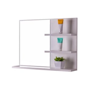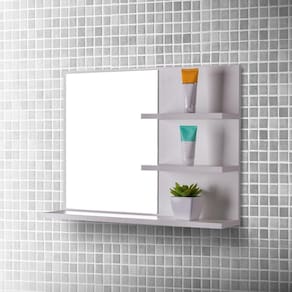 A espelheira possui 3 prateleiras externa para guardar e organizar itens de higiene pessoal e acessórios do seu banheiro, seu espelho é amplo, tornando-o um produto versátil.