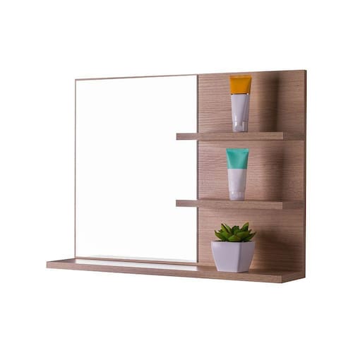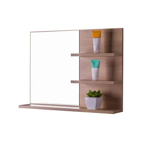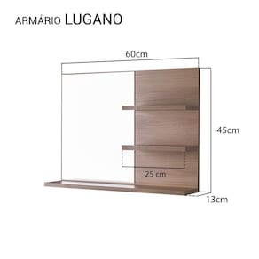 Espelho para Banheiro com Prateleiras Lugano Carvalho 60 x 45cm é a escolha perfeita para quem busca elegância, sofisticação e praticidade para seu banheiro.
