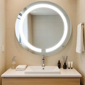 Espelho Redondo 60cm Touch com Iluminação Direta com LED Duplo Integrado: Proporciona uma luz uniforme e clara, ideal para atividades de precisão como maquiagem, cuidados com a pele e barbear. Acionamento Touch: Permite ligar/desligar e ajustar a intensidade da luz com apenas um toque, garantindo praticidade e modernidade. Estética Elegante: O design circular com aro iluminado valoriza qualquer espaço, conferindo sofisticação e charme ao ambiente. Economia de Energia: LEDs de alto desempenho com baixo consumo energético e longa durabilidade. Reflexão de Alta Qualidade: Espelho de superfície plana e nítida, que evita distorções e facilita o uso diário. Acompanha Lâmpada: 02 Altura do Espelho: 60 cm Ambiente Principal: Banheiro codigo_ean: 7900288252586 Composição: 80% Espelho, 5% Fitas de Led, 5%EVA, 5%Suporte,5% Botão Touch Cor: espelho lapidado Cor do Produto: Espelho Lapidado Cor Interna: Branco Escala de Brilho: Fosco Espessura do Espelho: 3 mm Espessura do Material da Estrutura: 0 mm Formato do Espelho: Redondo Formato Espelheira: Redondo Informações Complementares: Espelho com iluminação direta e 2 cores de Led integrados Itens Inclusos: 1 Espelho e Kit Ferragem Largura do Espelho: 60 cm Manual de Montagem e Instalação: https://product-hub-prd.madeiramadeira.com.br/687032651/documents/5fee04b0-1e40-4076-9685-d3f6182ac9c73263378648917598409084277.pdf Marca: Reduna Material Principal: Espelho Necessita Montagem: Não Origem do Produto: Nacional Peso: 3,5 kg Possui Espelho: 01 Possui iluminação: Sim Possui Portas: Não Possui Prateleiras: Não Possui Toalheiro: Não Possui Tomadas: Sim Recomendações de Uso, Manutenção e Limpeza: Limpar com pano macio e úmido, sem uso de produtos abrasivos Tipo de Fixação do Espelho: Parafusos Tipo de Lâmpada: Led undefined: 517697326 Voltagem da Tomada: Bivolt