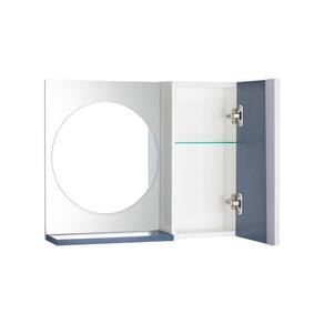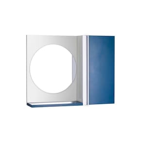 Espelho Redondo para Banheiro com Armário Azul com Barra Vertical. Já vem montado, pronto para colocar na parede. É só abrir a caixa e instalar em seu banheiro. Acompanha 2 parafusos com buchas para instalar na parede.