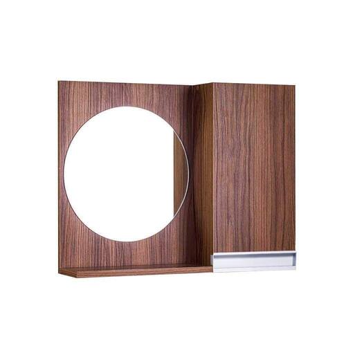 Espelho Redondo para Banheiro com Armário Nogal com Puxador de Metal. Já vem montado, pronto para colocar na parede. É só abrir a caixa e instalar em seu banheiro. Acompanha 2 parafusos com buchas para instalar na parede.