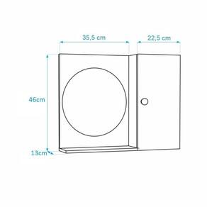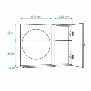Espelho Redondo para Banheiro com Armário Preto e Branco. Já vem montado, pronto para colocar na parede. É só abrir a caixa e instalar em seu banheiro. Acompanha 2 parafusos com buchas para instalar na parede. Obs: a colocação dele na parede é por conta do cliente, mas é bem fácil de fazer, basta uma furadeira, régua e lápis para marcar o local de instalação. Basta colocar os dois parafusos na parede, depois encaixar o armário com espelho neles (tem 2 suportes metálicos atrás do armário, para encaixar nos parafusos). Armário para Banheiro com Espelho na cor Preto e Branco é ideal para organizar vários itens. Possui prateleira interna em vidro, armário com porta e amplo espelho. É a escolha perfeita para seu banheiro. Material: MDP 15mm Cor: Preto e Branco Altura total: 46cm Largura total: 58cm Profundidade total: 12,5cm Instalação: a montagem e instalação do produto na parede são por conta do cliente Limpeza e conservação: recomenda-se a limpeza com pano úmido, não utilizar produtos abrasivos ou químicos Obs: Este anuncio inclui somente o armário com espelho, todos os itens de decoração das fotos não estão inclusos.
