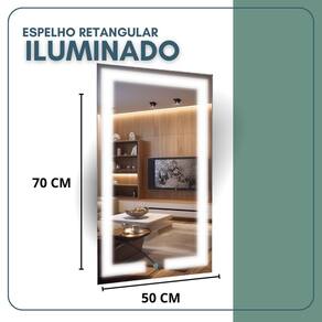 Espelho Retangular Iluminado com LED Touch 70x50cm – 3 Cores de Luz