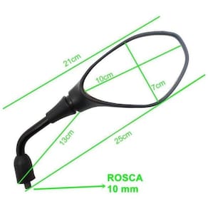 Podendo ser utilizado em todas as motos com rosca de 10mm, este retrovisor possui fabricação em plástico abs com qualidade e acabamento excepcionais. As hastes são na cor preta, colaborando ainda mais com o visual do produto. Pode ser facilmente instalado por qualquer pessoa, pois possui um encaixe perfeito.