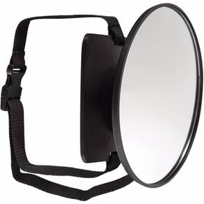 Ele é resistente à queda e super prático, pois, sua instalação é feita no encosto do banco traseiro através de alças ajustáveis e clipe para fechar. O espelho é convexo, ampliando o campo de visão e gira 360 para que possa ser posicionado de acordo com o melhor ângulo.