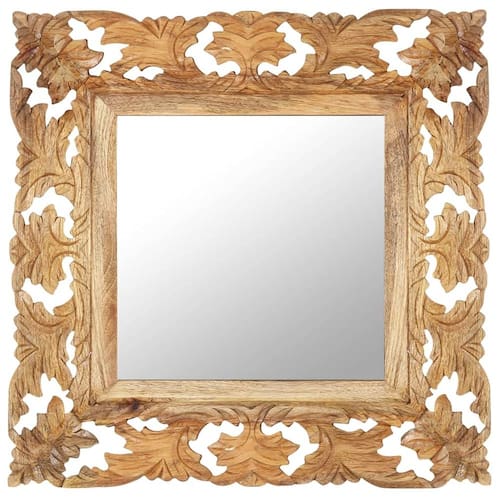 Este espelho de madeira esculpido à mão é uma adição fabulosa a qualquer espaço, misturando praticidade com boa aparência. Feito de madeira maciça de manga e com um lindo design esculpido à mão, não é apenas uma superfície refletiva prática, mas também melhora a aparência do seu banheiro, sala de estar