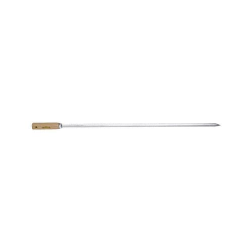 Espeto Aço Inox Simples 80Cm Este espeto é ideal para o seu churrasco, de material resistente, suportará de forma segura o alimento. Com 80cm de comprimento comportará carne para a família toda. Tem cabo em madeira trabalhada e envernizada, sendo material de boa qualidade. Perfeito para compor sua churrasqueira.
