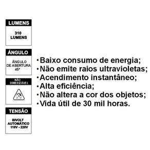 Eficiência garantida: fluxo de 310 lúmens com apenas 5W de potência.