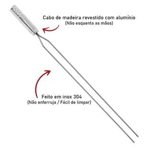 Espeto Duplo Para Churrasco Inox Cabo Madeira 66cm Issi Grill