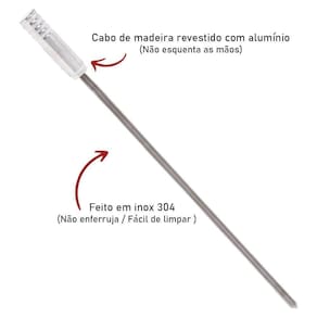 O Espeto Espada Simples Issi Grill possui 66 cm, é feito em aço inox 430 com cabo de madeira revestido em alumínio, este modelo é de um espeto muito versátil, para carnes, linguiças e asinhas de frango e muito mais.