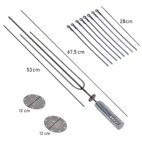 - Espeto Tridente com 2 Discos de inox para colocar 8 espetinhos de inox