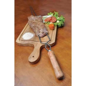 Espeto para Churrasco Espeto Duplo Fino 75CM Cromado para Assar Carnes em Arame de Aço com Cabo de Madeira