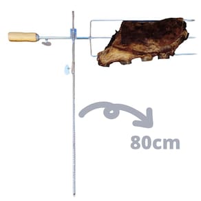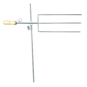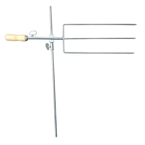 Espeto triplo com apoio para fazer um delicioso churrasco no fogo de chão; Com regulagem de altura e posição do espeto com relação ao fogo; Reforçado para o preparo de peças inteiras, ideal para todos os tipos de churrasqueiras; Ideal para o preparo de carnes, legumes, frutas e outras opções de alimentos que vão ao fogo.