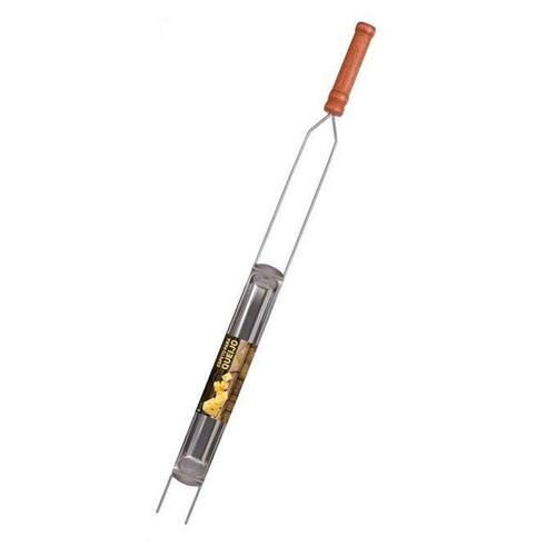 Sensacional espeto para assar queijo e pão de alho. Toda a praticidade que seu churrasco precisa com este o Espeto da Grilazer, Possui uma forma para colocar o seu queijo e levar à churrasqueira. Chega de ver seu queijo ou pão de alho caindo as brasas. Chega de desperdício pois ele possui um bandeja para colocar o pão ou o queijo. Seu churrasco estará muito mais completo. Você não pode ficar sem este espeto entre seus apetrechos de churrasco. Largura: 41,5 cm (Bandeja), 69 cm (Haste), 85 cm (Com Cabo)